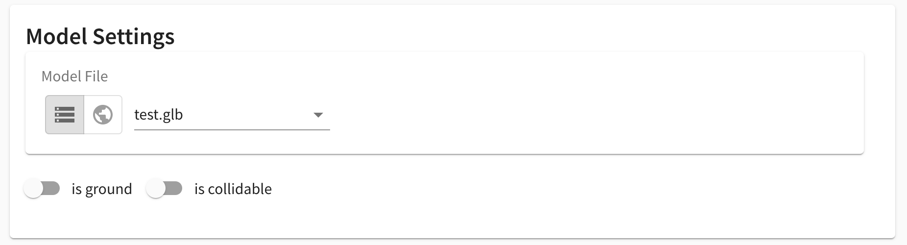 It is possible to mark 3D models as ground or collidable from within the Arium editor by using the isGround and isCollidable flags within the model settings panel: